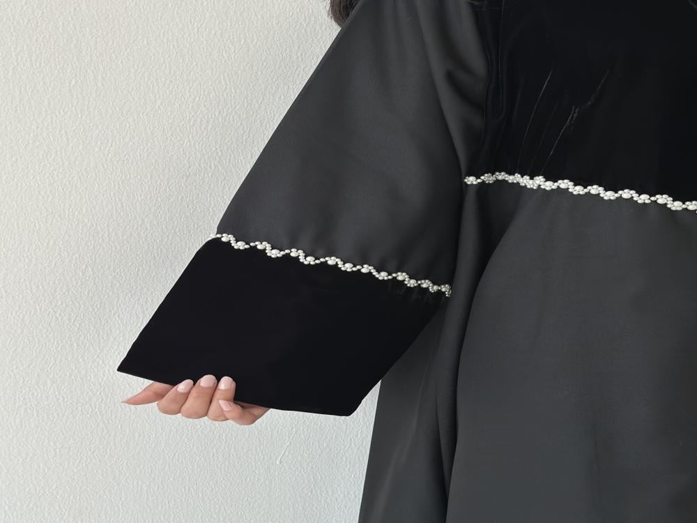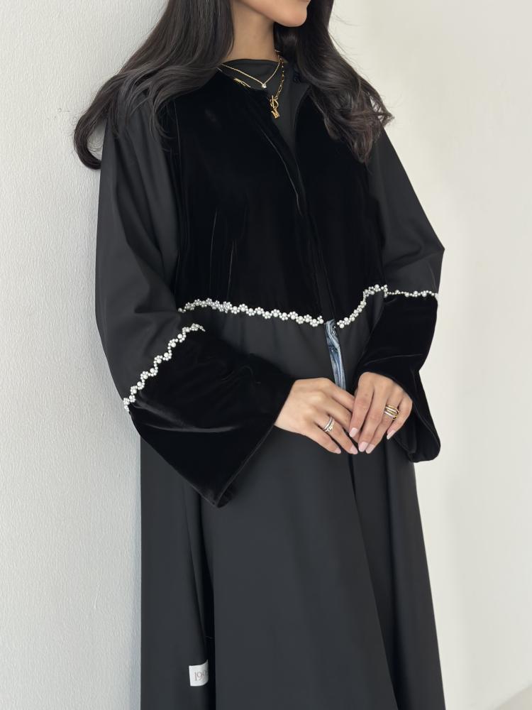 عباية – من قماش المخمل الاسود مع الزركون وشك لولو