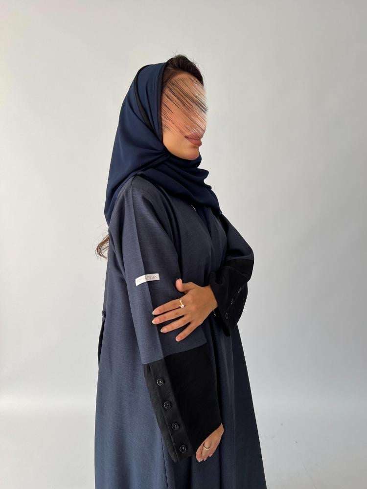 عباية صيفية مصنوعة من لينين الصيفي الغير شفاف، مزينة بتداخلات من الجاكار الصيفي في الأكمام.