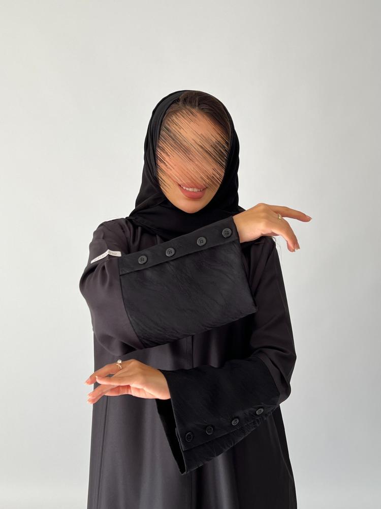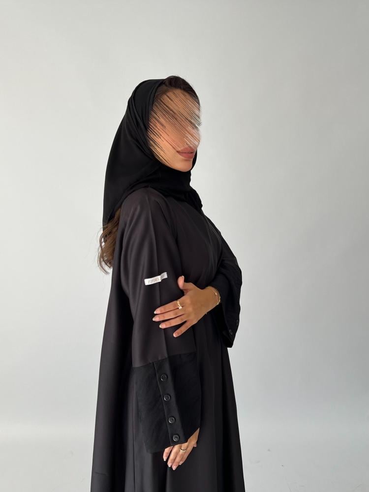 عباية صيفية مصنوعة من لينين الصيفي الغير شفاف، مزينة بتداخلات من الجاكار الصيفي في الأكمام.
