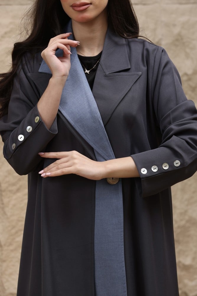 عباية من اجود انواع الكريب مع تداخل قماش الزركون .
